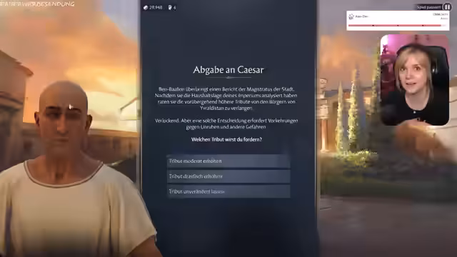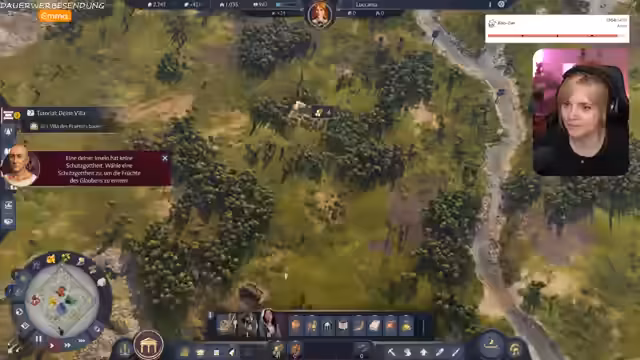 01:02:30Anne kündigt den Start eines neuen Anno-Spielstands an, um das Problem kleiner Inseln zu vermeiden, das sie in früheren Sessions hatte. Sie startet im Endlos-Modus von Anno Pax Romana, betont, dass der Stream freiwillig und unbezahlt ist, da ihr das Spiel wirklich Spaß macht. Nach der Auswahl eines Charakters und der Schwierigkeitsstufe „Normal“ beginnt sie in Latium, einer Region, die ihr am leichtesten fällt. Sie plant, den Spielstand am Samstag und Sonntag fortzusetzen. Die ersten Schritte im Spiel umfassen die Erkundung der Inseln, das Sammeln von Holz und die Errichtung grundlegender Gebäude wie Fischereien und Haferfelder, um die Bedürfnisse der Bevölkerung zu decken. Anne interagiert mit dem Chat, beantwortet Fragen zum Spiel und gibt Tipps, wie den Anno-Soundtrack beim Lesen zu nutzen. Sie freut sich über die Begeisterung der Community für Anno und die gemeinsame Spielerfahrung.