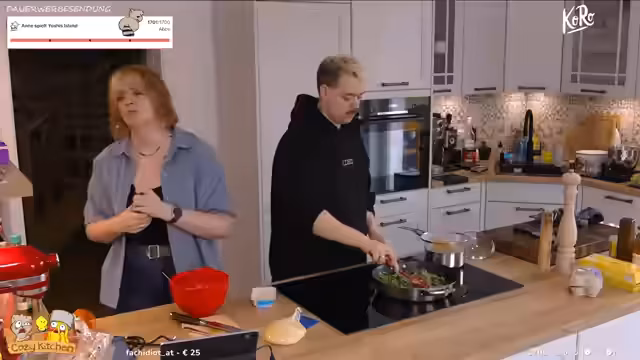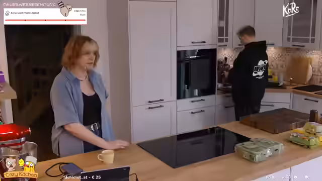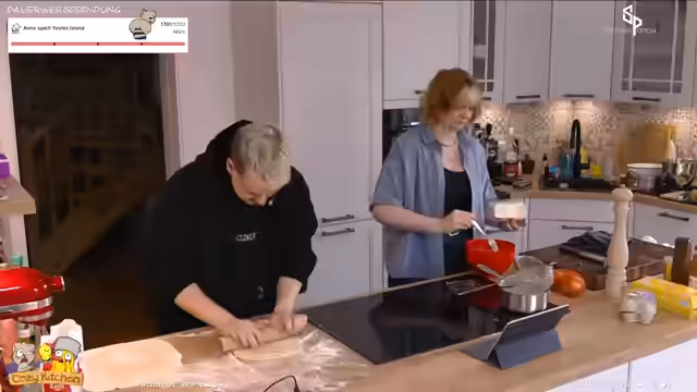 04:51:45Da Anne hungrig ist, wechseln die beiden in die Küche, um Maultaschen zu kochen. Der Streamer erklärt, dass er Maultaschen aus seiner Zeit in Stuttgart kennt und diese im Zusammenhang mit einem 'illegalen Maultaschenhandel' aus dem Pen & Paper-Rollenspiel 'Pemmen Paper' sehen. Er erzählt die Legende der 'Gottesbescheißele', da man Sonntags kein Fleisch essen durfte und das Fleisch in den Teigtaschen versteckt wurde. Da der Streamer kein Fleisch isst, werden die Maultaschen mit Spinat und Feta gefüllt.