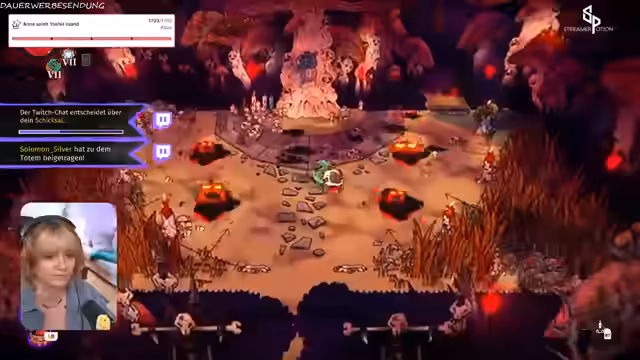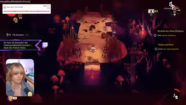 03:02:40Der Kult stößt auf mächtige Gegner, wie den "kleinen Lamm", der den Streamer massiv angreift. Gleichzeitig werden neue Fähigkeiten entdeckt und genutzt. Die rote Krone kann neue Kräfte freischalten, indem sie die Herzen besiegter Feinde verzehrt. Dies führt zur Wahl zwischen dem Flammenschuss und einem Tentakel, um im Kampf gegen die aufziehende Bedrohung überleben zu können.