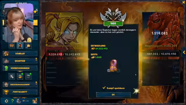 08:43:33Innerhalb von Shakes & Fidget wird die Entwicklung des eigenen Zoos vorgestellt. Ein neu gefundenes Ei wird gefüttert, um das Tier aufzuziehen und zu leveln. Auch in der Gilde wird gearbeitet, um Tiere im 'Gaten-Pet' zu stärken und gemeinsam Dungeons zu bestreiten. Die Gilde 'Raldes' aktiviert ihr Portal und kämpft gegen starke Gegner wie den 'Magma Storm', um Items und Stärke zu gewinnen.