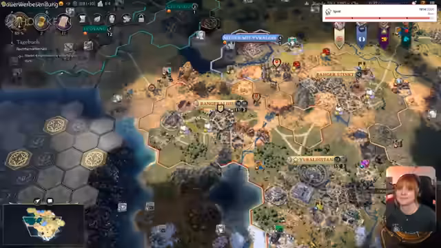 06:03:48Das Spiel eskaliert militärisch, als eine Nachbarzivilität den Angriff eröffnet. Der Streamer mobilisiert seine Truppen, darunter einen Krieger mit dem 'Brennenden Pfeil' Fähigkeit, um den Angriff abzuwehren. Es kommt zu einem taktischen Rückzug, um seine Truppen zu schonen und eine Gegenoffensive vorzubereiten. Währenddessen analysiert er die Stärken und Schwächen seiner Gegner und überlegt, ob er eine Allianz schließen soll, um sich gegen einen gemeinsamen Feind zu verbünden. Die Ressourcen, insbesondere Gold, werden knapper und er muss strategisch entscheiden, welche Projekte er priorisieren soll.
