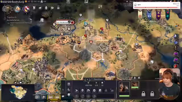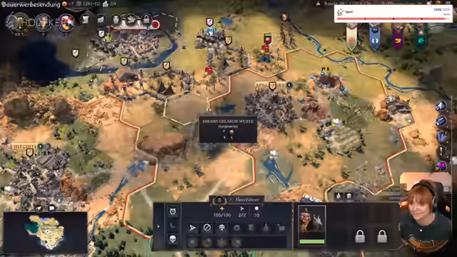 01:12:00Das 12-Stunden-Stream-Event für Civilization 7 beginnt mit einer strategischen Analyse der "Hahn Fernkampfeinheit". Es wird festgestellt, dass diese Einheit über stark verteidigende Fähigkeiten verfügt, was als "overpowered" bewertet wird. Streamer yvraldis äußert Enttäuschung über die不公平igkeit des Setups und die fehlende Möglichkeit, den Anführer am Event-Tag auszuwählen, was als "übel" empfunden wird. Yvraldis betont, dass das Spiel komplex ist und nur diejenigen, die den Runden-Timer meistern, wirklich "verdient" hätten, zu gewinnen.