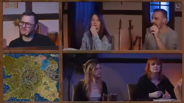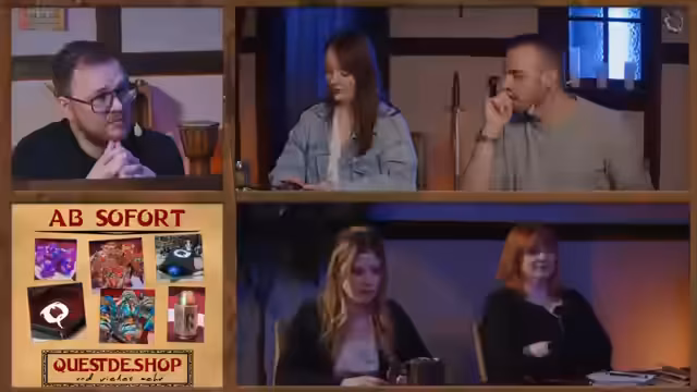 02:57:12Margaret bietet an, die verfluchte Armschienen von Dalia, die sie ebenfalls besitzt, zu untersuchen. Die Gruppe diskutiert, ob sie diese Waffen zurück zu den Drow bringen sollen, was auf moralische Bedenken stößt. Nachdem das Amulett sicher aufgehoben ist, überlegt die Gruppe, was als Nächstes zu tun ist, und es wird erwähnt, dass es ein Message-Board in der Gilde gibt und Informationen über einen Erzfeind gesammelt wurden.
