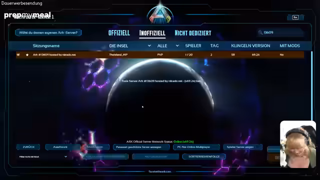 00:55:52Nach der Auswahl von ARK als Spiel steht nun die Wahl der Spielkarte an. Die Streamerin und Ranger entscheiden sich für „The Island“, da diese für Anfänger am besten geeignet ist. Die Erstellung des Spiels wird gestartet. Gleichzeitig tauchen weitere technische Herausforderungen auf, da die Server-Einstellungen aufwändig sind und keine dedizierten Server für zwei Spieler einfach verfügbar sind. Es wird eine Diskussion über die Kosten und Notwendigkeit eines Servers geführt. Schließlich entschließt sich die Streamerin, einen Nitrado-Server zu mieten, um den gemeinsamen Stream zu realisieren. Während Alex die Einrichtung übernimmt, wird der Start des Spiels vorbereitet.