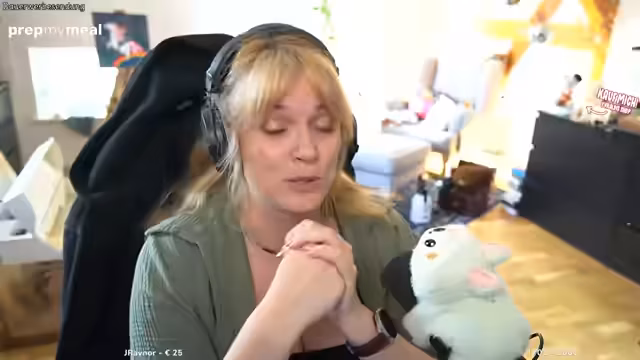 00:11:33Die Streamerin zeigt sich sehr dankbar für die Unterstützung der Community. Sie liest im Chat lange Listen von Namen vor, die ihr Glückwünsche zum Jubiläum geschickt haben, und erwähnt speziell Unterstützer, die seit 78 Monaten auf Stufe 3 bleiben. Es kommt zu einer persönlichen Anekdote über ihre Nichte, die ihr ein kreatives Bild von ihrem Arbeitsplatz mit Olli gemalt hat. Sie erzählt auch vom Urlaub, in dem sie viel Avocado gegessen hat, um sich an den Geschmack zu gewöhnen, und sich an das klimabelastende Gewürz herangewöhnen muss. Diese persönliche Dankbarkeit und das Teilen von Anekdoten schafft eine enge Verbindung zu der Community.
