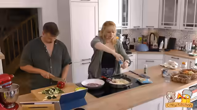 06:41:39Zur Umstellung der Ernährung wird ein gemeinsamer Plan verfolgt. Ein Rezepte-Block wurde angeschafft, in dem gesunde Alternativen gesammelt werden, von Snacks bis zu süßen Speisen. Da eine gesunde Ernährung Herausforderungen mit sich bringt, wird zum ersten Mal ein Meal Prep für die anstehende Gamescom vorbereitet, um auch in stressigen Situationen auf passende, sättigende Mahlzeiten zurückgreifen zu können.