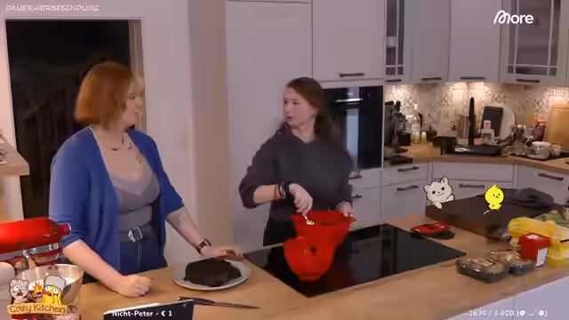 06:05:10Spontane Freunde, darunter Belle, die Ziehtochter von Marco, erscheinen im Stream und unterbrechen den ursprünglichen Plan. Gemeinsam wird ein Maulwurfskuchen mit Erdbeeren und Bananen gebacken. Jedoch geht die Backaktion schief, da der Kuchen bei falscher Temperatur im Inneren flüssig bleibt und auseinanderbricht. Statt die missglückten Kuchenstücke zu entsorgen, wird der Kreativität freien Lauf gelassen. Der Kuchen wird dekonstruiert: Die Kruste wird abgekratzt, das Innere mit Obst und Konfitüre vermischt und schließlich mit Sahne und Bröseln zu einem „Maulwurfskuchen-Häufchen“ wieder aufgebaut.