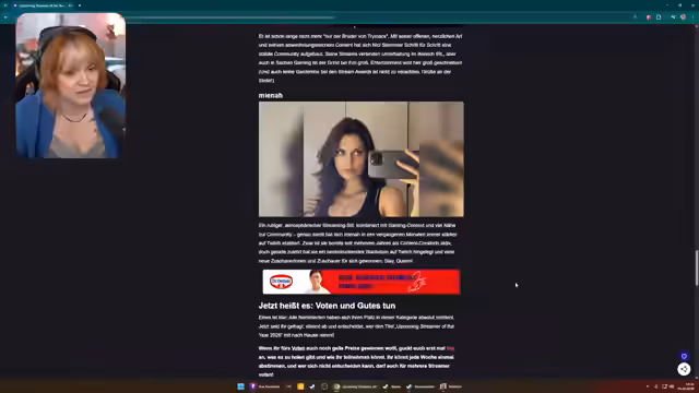 06:39:03Ein kurzer, sarkastischer Exkurs über die bevorstehende monatliche Steuererklärung folgt, wobei betont wird, dass dies nur langweilige Büroarbeit ist. Der Fokus verlagert sich sofort auf eine positive Nachricht:Streamer ist als Gamerin in der Kategorie „Beste Gamerin“ bei den Early Game Awards nominiert. Eine Nominierung bedeutet jedoch nicht automatisch den Sieg, da es sich um ein Zuschauer-Voting handelt.Streamer bittet die Community aktiv um Stimmen, da sie starke Konkurrenz hat, und erwähnt, dass auch andere Mitglieder von Team Ars nominiert sind.