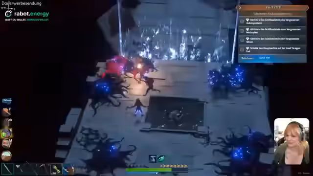 03:44:22Im Inneren des Dungeons stellt sich eine anspruchsvolle Jump'n'Run-Passage als zentrales Hindernis heraus. Teamwork ist hier essentiell, wobei ein Spieler blockt und der andere angreift. Trotz mehrfacher Tode wird gemeinsam durchgekämpft, bis zum finalen Bosskampf. Ein unvorhergesehenes Problem tritt auf, als die Verbindung verliert und ein Restream nötig wird, um das Kochen-Event am anderen Kanal fortzusetzen. Gleichzeitig wird im Chat das Follow-Ziel von 50.000 Followern für den Kanal thematisiert, kurz bevor der Stream abrupt endet.