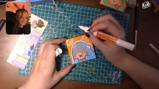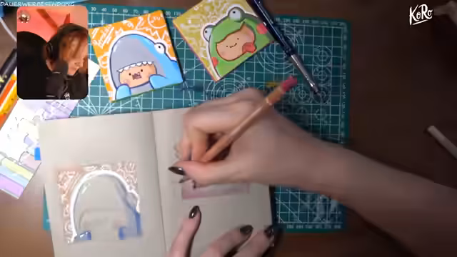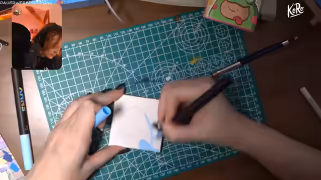 01:26:02Nach der Entscheidung für den Hai beginnt der Malprozess, zunächst durch eine Vorskizze auf dem Papier. Streamer und tauschen sich über die Farbpalette aus und entscheiden sich für Blau- und Grautöne für den Hai sowie einen orangefarbenen Hintergrund für Kontrast. Während der Arbeit kommt es zu technischen und materialbedingten Hindernissen. Das Handy des Streamers piept ständig ablenkend und einige der Acrylstifte sind nicht deckend genug und müssen mehrmals überstrichen werden, was die Arbeit verlangsamt und frustrierend ist. Dennoch wird die Hauptstruktur des Haies begonnen.