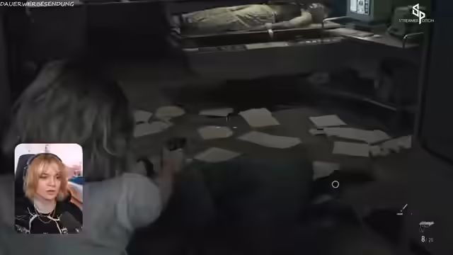 02:59:17Der Streamer trifft auf Emily, ein kleines Mädchen, das im Sanatorium festgehalten wird. Mit ihr im Angriff ist der Bewegungsumfang stark eingeschränkt. Sie wird zunächst im Pförtnerbüro in Sicherheit gebracht, während der Streamer versucht, weiterzukommen. Er wird jedoch von mehreren Monstern angegriffen und muss improvisieren, um den Kampf zu überleben.