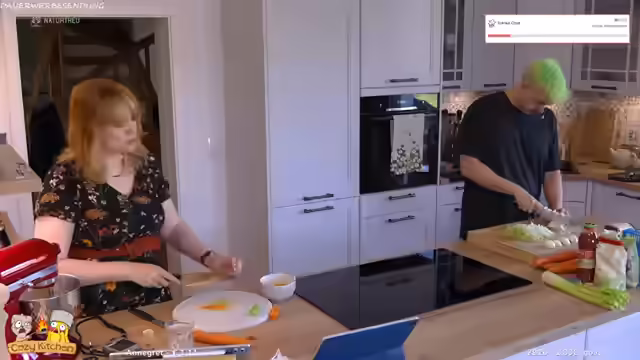 01:07:33Anstelle von Hackfleisch wird Sojagranulat für die Bolognese verwendet, wobei betont wird, dass kein Gemüsebrühe vorhanden ist, aber Waldpilzfond als Alternative dient. Die Streamerin snackt während der Zubereitung Stangensellerie und lobt dessen Geruch, der die Soßenbasis geschmacklich ergänzt. Es wird erwähnt, dass der Chat eine neue Eigenschaft an der Streamerin entdeckt hat: das Reiben an der Nase, wenn sie eine Idee hat. Die Streamerin bittet den Chat, den 'schönen roten Wäscheständer'-Gag beizubehalten, um die Reduzierung auf ihr Äußeres zu neutralisieren. Die Formaldehit-Stränge des Selleries werden durch das feine Hacken unbedenklich gemacht. Es wird die Bedeutung des Enderdrachen auf dem Server hervorgehoben, dessen Ei nach dem Besiegen in der Kirche platziert werden soll. Die Polaris-Veranstaltung wird als Möglichkeit genannt, die Community-Mitglieder persönlich kennenzulernen. Es wird auf die Ähnlichkeit des Sofritos mit der italienischen Flagge hingewiesen, da die Farben Grün (Sellerie), Weiß (Zwiebel) und Rot (Karotte) enthalten sind. Die Geschichte, warum Möhren orange sind, wird kurz angerissen.