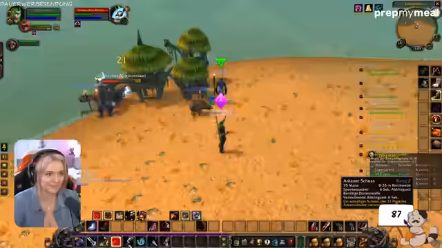 01:12:50Der Fokus verlagert sich voll auf das Gameplay in World of Warcraft als Neueinsteigerin. Der Streamer erkundet eine Questzone, sammelt Ressourcen wie Spinnenfleisch und kämpft gegen unterlevelte Gegner, die aufgrund ihrer hohen Anzahl dennoch gefährlich sein können. Sie nutzt ihren Hunter-Pet, 'Gigashad', effektiv, um sich im Kampf zu unterstützen. Eine zentrale Herausforderung ist das Sammeln von zehn Gegenständen, was geduldiges Vorgehen und strategisches Manövrieren erfordert. Der Streamer zeigt dabei viel Fingerspitzengefühl, um nicht von zu vielen Gegnern gleichzeitig angegriffen zu werden und stellt immer wieder ihre Spielweise entspannt und lösungsorientiert dar.