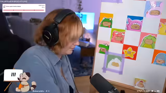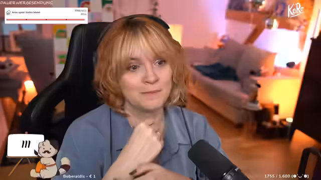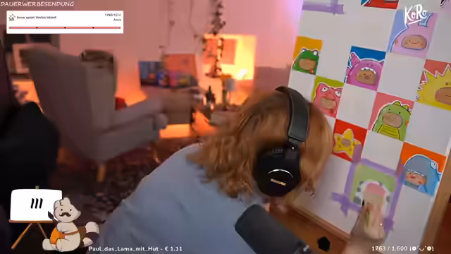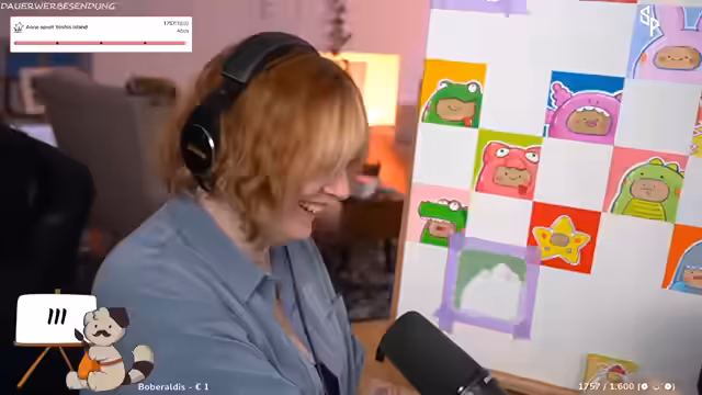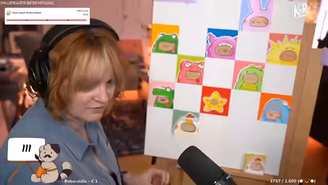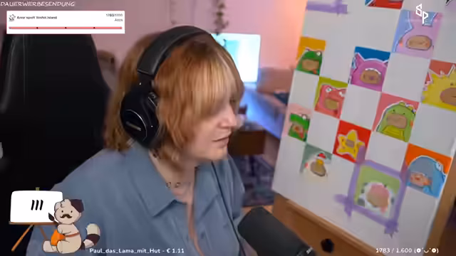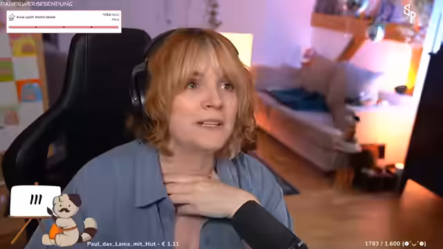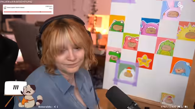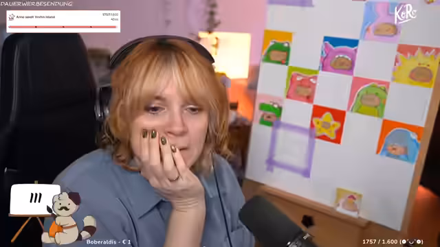 00:42:02Der Streamer interagiert stark mit dem Chat, der gebeten wird, seinen Tag mit Emotes zu beschreiben. Es werden persönliche Themen angesprochen, wie die Angst vor Gewitter und ein bevorstehender Urlaub, der finanziert werden muss, weshalb die gemalten Bilder im Shop verkauft werden. Der humorvolle Umgang parasozialer Beziehungen wird thematisiert, ebenso die Vorliebe für Trash-TV-Formate und die Ablehnung von inszeniertem Drama.