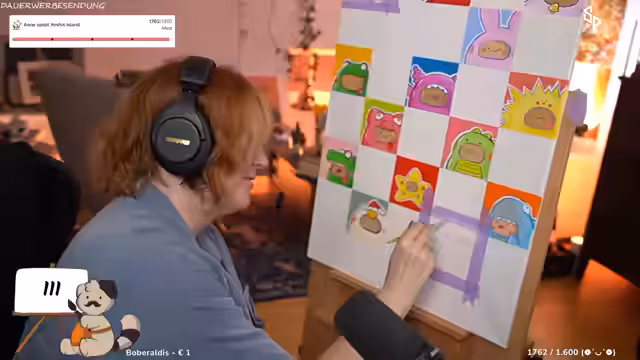 02:18:00Hollas kreative Arbeit an Miniaturen wird fortgesetzt. Sie verwendet Lupe und Licht, um präziser arbeiten zu können. Die fertig gestellten Waldgeister werden bewundert. Es werden kreative Projekte von anderen Community-Mitgliedern im Discord geteilt, wie ein Titanic-Modellbau oder eine Temperaturdecke. Holla vergleicht das Erlernen eines Instruments mit Malen und betont, dass beides Geduld und Übung erfordert, was sie als ungeduldige Person als schwierig empfindet.