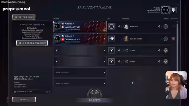 01:05:19Das große !CIV Turnier startet mit dem ersten Zeitalter. Streamer yvraldis plant die Matches und kontrolliert die Lobby-Host-Fähigkeit. Der Fokus liegt auf der Auswahl der Zivilisation und des Anführers. Wichtig ist, dass der gemeinsame Chat deaktiviert wird, um jegliches Metagaming zu verhindern. Die Coaches sind in separaten Lobbys, und die Bildschirmübertragung soll sichergestellt werden, was jedoch anfänglich auf technische Probleme stößt. Nach der Einrichtung werden alle Spieler eingeladen, ihre Status auf 'bereit' zu setzen, und die Runde beginnt.
