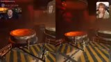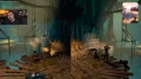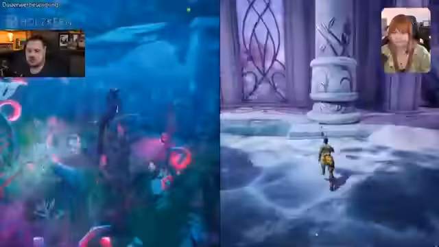 01:14:30Während des Spiels interagieren die beiden Spieler intensiv mit der Umgebung. Sie stoßen auf skurrile Elemente wie eine Kanalisation in einer Fantasy-Welt oder müssen unter Wasser hindurchschwimmen. Yvraldis als Fantasy-Autorin und Ranger mit seiner düstereren Sichtweise führen dabei eine interne Debatte darüber, was eine gute Geschichte ausmacht, während sie sich durch das chaotische Level kämpfen.
