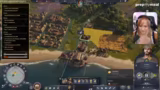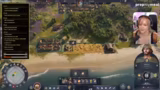 00:18:11Nach Einladungen ins Spiel und in einen gemeinsamen Chat starten die Mitspielerinnen Melanie und Merle. Es zeigt sich, dass Melanie zwar Vorerfahrung mit älteren Anno-Teilen hat, Merle das Spiel jedoch noch nie gespielt hat. Das Tutorial wird übersprungen, und es wird im normalen Schwierigkeitsmodus mit drei KI-Gegnern gestartet. Während der Streamer die Basis koordiniert, stoßen die Spielerinnen schnell auf erste Herausforderungen: Melanie wählt eine zu teure Insel aus, was zu finanziellen Engpässen führt, und der Aufbau der ersten Produktionketten gestaltet sich aufgrund fehlender Straßenverbindungen und Platzierung von Gebäuden holprig.
