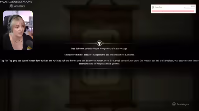 04:58:57Es wird ein Rätsel mit Vogel- und Fuchsplatten gelöst. Die Spielerin speichert ihren Fortschritt und äußert ihren zunehmenden Frust über das Spiel, insbesondere über den Mangel an Horror und die Überlastung mit Gegnern. Sie vermutet, dass der Vater der Spielfigur sie verkauft hat. Ein weiteres Rätsel deutet auf einen Kampf zwischen zwei Parteien hin, wobei der Himmel als Zeuge dient. Die Spielerin findet sich in einem Zimmer wieder und hat ein Gefühl von Gänsehaut. Persönlichkeitsspaltung wird als mögliche Interpretation der Ereignisse im Spiel genannt. Die Spielerin kämpft gegen weitere Gegner und ist zunehmend genervt von dem Kampfsystem. Sie äußert den Wunsch, die anderen Enden des Spiels in Ruhe anzusehen. Das Sounddesign und die Monster werden gelobt, während das Kampfsystem weiterhin kritisiert wird. Die Eltern der Spielfigur werden erwähnt, und es wird spekuliert, was sie gefeiert haben könnten.