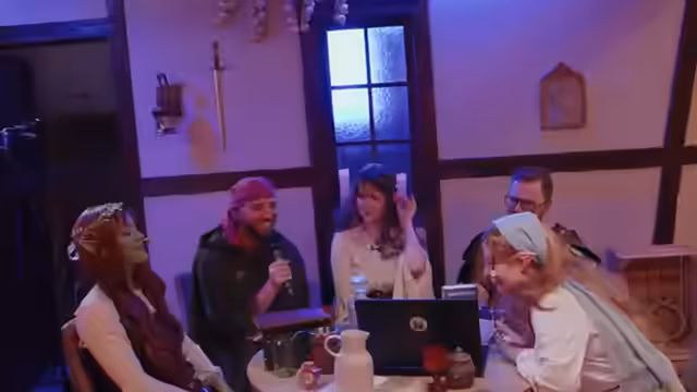 00:38:36Die Spieler teilen ihre Erfahrungen mit Pen & Paper. Tom berichtet, dass er außer seiner Teilnahme bei 'Quest' nur vier Sessions mit einer Nachbarschaftsgruppe gespielt hat, in denen er eine alte, aber dumme Schildkröte namens Quinterius verkörperte. Kaya ist Teil der Pen & Paper Gruppe 'Tales of the Script', die auf YouTube aktiv ist und mittlerweile über 20 Folgen produziert hat. Sie erzählt, dass die Idee dazu von Toni kam, der früher schon ähnliche Projekte umgesetzt hatte. Die Aufnahmen finden in einem Gaming-Studio in Hamburg statt. 'Tales of the Script' feierte kürzlich sein einjähriges Bestehen und hat eine sehr engagierte Community. Es wird auch über die Entstehung des 'Quest'-Projekts gesprochen. Ende 2022/Anfang 2023 entstand die Idee, als Simon, der normalerweise Spielleiter ist, Call of Cthulhu spielte. Inspiriert durch den D&D-Film kam die Idee auf, ein eigenes Projekt zu starten. Was als privates Spiel begann, entwickelte sich schnell zu einem großen Projekt mit einem eigens gebauten Tisch, der sich zu einer ganzen Taverne ausweitete. Vera erinnert sich an eine frühere Runde mit Steffen von Rocket Beans, Feli und Lisa, in der sie 'Wesen' spielten, ein skandinavisches Horror-Rollenspiel. Es gibt auch Pläne für ein 'Star Trek'-Pen & Paper mit Nadja (Nerdseeker), wobei die Idee eines Raumschiff-Sets bereits im Raum steht. Der Bau der Sets ist sehr aufwendig, aber macht den Beteiligten viel Spaß.