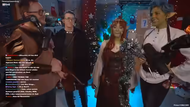 00:01:57Die Streamer bereiten sich auf ein gemeinsames Live-Action-Rollenspiel (LARP) vor, das auf mehreren Kanälen gleichzeitig live übertragen wird. Es wird erwähnt, dass Aldi Gaming eine Aktion bis zum 12.12. durchführt, bei der Subs verschenkt werden, wenn der Hashtag #Aldigönnt im Titel verwendet wird. Eine solche Aktion führte dazu, dass 50 Subs und 7000 Bits an einen der Streamer gespendet wurden, was für große Begeisterung sorgte. Die Vorbereitungen für das LARP sind intensiv, mit 13 Creatorn, Schauspielern und Sprechern, die alle Rollen spielen werden. Das Event findet in einer komplett ausgestatteten Halle mit einem eigens gebauten Set statt, unterstützt von zehn Kameras und 13 Mikrofonen. Die Teilnehmer sind alle verkleidet und freuen sich auf ein improvisiertes Abenteuer von zwei Stunden in einer Taverne. Es wird betont, dass das gesamte Projekt von langer Hand geplant und mit viel Aufwand umgesetzt wurde.