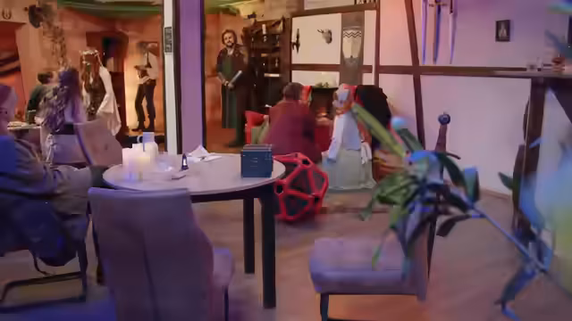 00:13:52Die Vorbereitungen für das bevorstehende Live-Roleplay-Event werden intensiv beschrieben. Der Spielleiter, Ben, gibt ein Briefing und stellt das Setting vor. Das Dorf Grenzwinkel liegt im Grenzbereich zweier Königreiche, Nordrien und Prestigien, was für politische Spannungen sorgt. Die drei Spieler, Vera, Kaya und Tom, stellen ihre Charaktere vor: Rika und Annie, zwei Schwestern, und Talion Dornwind, ein wissbegieriger Buchliebhaber. Ihr Ziel ist es, in einer voll ausgestatteten Taverne das Abenteuer zu bestehen, bei dem ein NPC zum Spieler werden wird.