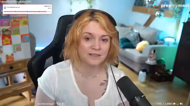 00:52:47Ein unangekündigtes Thema führt zu einer offenen Diskussion über Geräusche, die die Streamerin besonders stören. Dazu gehören Schmatzen, Rülpsen und das Kratzen von Metall auf Metall. Dies weitet sich zu einem allgemeinen Thema über persönliche Reizüberflutung aus, insbesondere in Menschenmengen wie auf dem IKEA oder der Buchmesse. Die Streamerin erzählt von eigenen Erfahrungen mit Stressreaktionen und teilt auch private Einblicke wie ihr eigenes Schnarchen und die damit verbundenen Sorgen, wie mögliche Schlafapnoe.