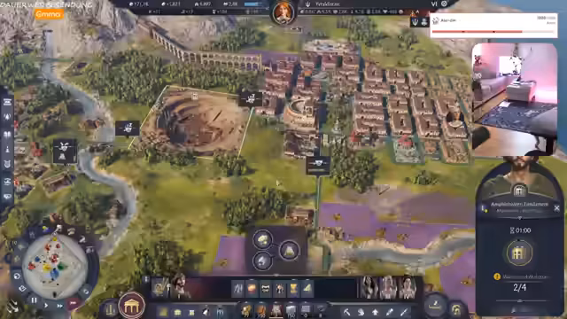 04:21:35Eine Quest zur Suche nach verlorenen Kisten im Hafen wird angenommen, wobei die Spieler Schwierigkeiten haben, die Kisten zu finden. Nach intensiver Suche werden die Kisten schließlich in der Nähe des Kontors und der Wohnhäuser entdeckt. Es stellt sich heraus, dass der Lehrling des Händlers vermisst wird, was eine weitere Suchaktion auslöst. Parallel dazu erhält der Spieler eine persönliche Anfrage von Kaiser Claudio, der um eine Spende bittet, um die kaiserlichen Ausgaben zu decken. Die Spieler entscheiden sich, eine beeindruckende Summe zu spenden, um die Zufriedenheit des Kaisers zu gewährleisten und das Ansehen des Imperiums zu steigern. Es wird auch ein Aufstand in der Stadt erwähnt, der jedoch schnell von den Wachen unter Kontrolle gebracht wird. Die Spieler müssen sich auch mit der Frage auseinandersetzen, wie sie ihre Lagerkapazitäten erhöhen können, um die steigende Produktion zu bewältigen. Es wird auch über die Bedeutung von eckigen Waschbecken als Statussymbol diskutiert, was zu humorvollen Kommentaren im Chat führt.