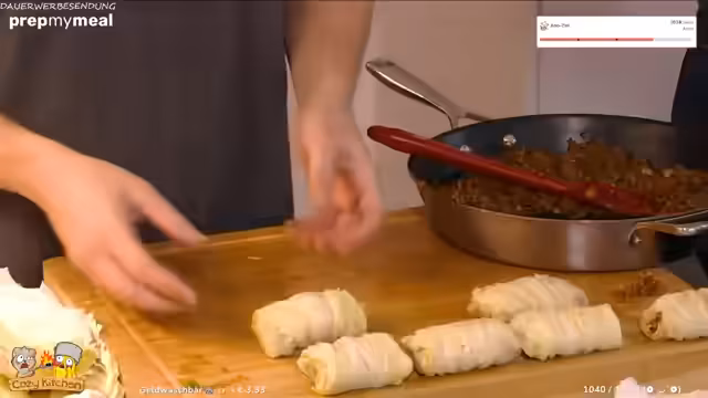 05:39:00Nachdem die Füllung mit Sojasauce und Sesamöl abgeschmeckt wurde, wird ein erster Geschmackstest durchgeführt. Die Mischung wird als sehr würzig, aber lecker empfunden, wobei die Sojasauce als etwas dominant wahrgenommen wird. Es wird überlegt, die Würze durch Zugabe von mehr Soja-Granulat oder durch einen weniger gewürzten Kartoffelbrei auszugleichen. Der Streamer erwähnt seine Partnerschaft mit Prep My Meal und weist darauf hin, dass heute der letzte Tag für bis zu 30 Prozent Rabatt ist. Er empfiehlt die Mahlzeiten für stressige Tage, an denen keine Zeit zum Kochen bleibt, und lobt die Qualität und den Geschmack der Gerichte, insbesondere der vegetarischen und veganen Optionen wie Gnocchis, Gemüselasagne und die XL-Portionen. Er betont, dass die Mahlzeiten eine gesunde und bequeme Alternative zu Fast Food darstellen und auch nach Messen, wenn die Ernährung oft vernachlässigt wird, eine gute Lösung bieten. Er ermutigt die Zuschauer, seinen Code zu nutzen, um die Partnerschaft zu unterstützen.