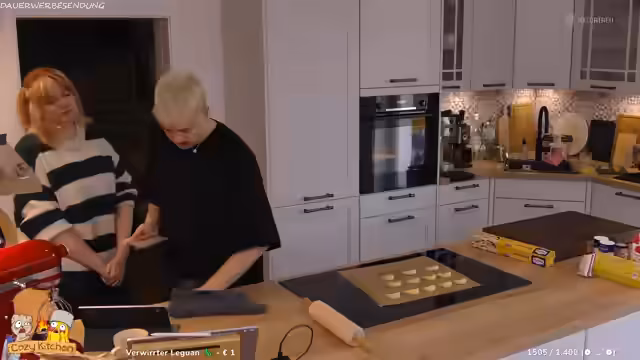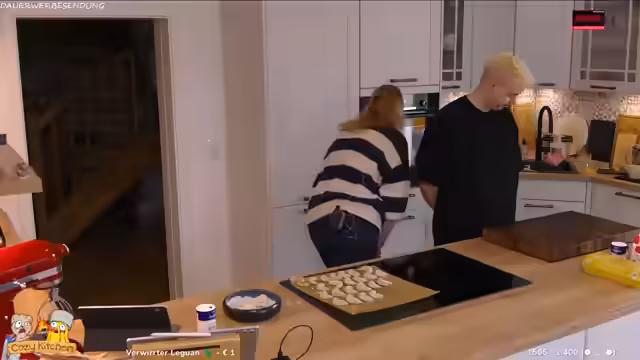 03:50:40Die Vorbereitungen für das Backen der Vanillekipferl beginnen. Das Rezept stammt von einer Zuschauerin namens Ulk-Tante, und es wird humorvoll betont, dass Ulk-Tante die Schuld trägt, falls etwas schiefgeht. Die Zutaten werden vorgestellt: Mehl, Puderzucker, Eigelb, Vanilleschote, Salz, Mandeln und kalte Butter. Die Streamer entscheiden sich, eine Küchenmaschine anstelle der Handmethode von Ulk-Tante zu verwenden. Während des Abmessens der Zutaten kommt es zu kleinen Verwechslungen in der Reihenfolge der Arbeitsschritte, die jedoch schnell korrigiert werden. Eine Vanilleschote wird aufgeschnitten, um das Mark zu entnehmen, und die Diskussion über die genaue Menge der Mandeln zeigt eine spontane Anpassung des Rezepts.