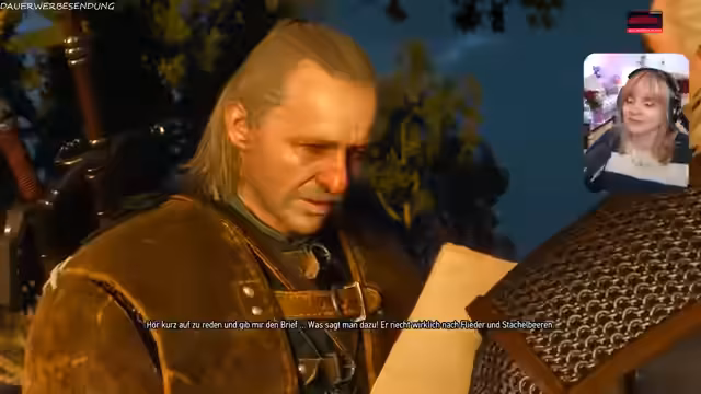 02:52:01Die Streamerin begrüßt einen Raidgeber herzlich und bedankt sich für den Besuch, wobei sie erwähnt, dass sie kurz zuvor über das Bild des Raidgebers gesprochen hatte. Sie informiert die Zuschauer, dass der Witcher-Stream bald endet, da ein volles Programm ansteht, einschließlich eines Wechsels zu Shakes & Fidget und anschließendem Backen von Vanillekipferl. Sie wünscht dem Raidgeber gute Besserung bezüglich seiner Migräne. Nach einer kurzen Überlegung, ob der Greifkampf noch vor dem Wechsel zu schaffen ist, wird der Plan gefasst, es zu versuchen. Es wird ein kurzer Exkurs zur Kräuterfrau unternommen, die Informationen über den Greifenangriff und die Suche nach Kreuzdorn als Köder liefert. Die Streamerin plant, das Witcher-Gameplay am nächsten Tag um 18 Uhr für zwei Stunden fortzusetzen. Die allgemeine Freude über die Rückkehr zu Witcher wird ausgedrückt, bevor der Fokus auf eine Produktplatzierung für Holzkern wechselt.
