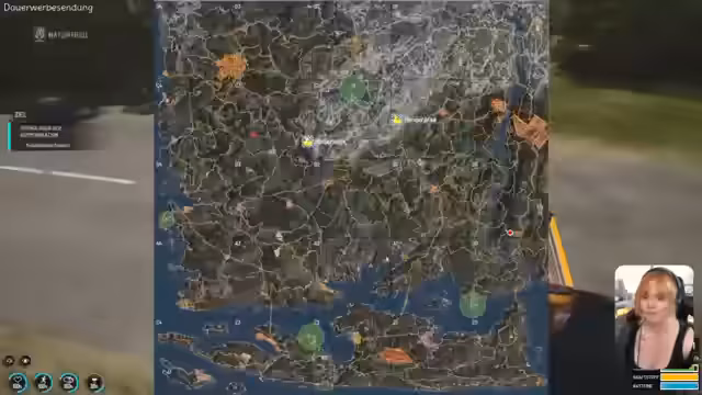 00:49:55Nachdem die realen Probleme besprochen wurden, wechselte der Stream zu dem Spiel Scum. Die Streamerin und ihr Co-Spieler Ranger starteten in ihrem virtuellen Fahrzeug und stellten fest, dass es alle Räder und Türen hat. Allerdings fehlte der Beifahrersitz, was zu einem seltsamen Aussehen führte. Sie beschlossen, die Karte des Spiels zu erkunden und suchten nach Waffen und Treibstoff. Da sie kein Geld hatten, wurden sie gezwungen, das Auto über die Strecke zu schieben. Der Fokus lag darauf, einen Militärstandort zu erreichen, um Ausrüstung zu besorgen, was einen riskanten Vorritt bedeutete. Der Chat gab währenddessen Navigationshinweise.