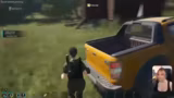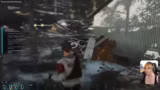 02:28:55Bei der Flucht aus dem Bunker steht der Gruppe ein Roboter-Gegner im Weg. Der Streamer versucht, diesen abzulenken, wird aber durch die Wand hindurch getötet. Er fühlt sich ungerecht behandelt, da der Gegner wallhakt, und unternimmt daraufhin den unehrenhaften Versuch, wieder zum Auto zurückgeportet zu werden, um sein Team nicht im Stich zu lassen.