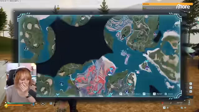 01:51:49Nachdem der Streamer sich bei Kaffee gestärkt hat, fliegt er zur Basis von Moon, die als eine große Burg integriert in die Berglandschaft wahrgenommen wird. Sie ist ordentlich und gut strukturiert. Der nächste Stopp ist die Basis von Haki, die als offen gestaltet und sehr gastfreundlich beschrieben wird. Haki schläft direkt neben der Taverne, und die gesamte Basis wirkt sehr hübsch und stilvoll.