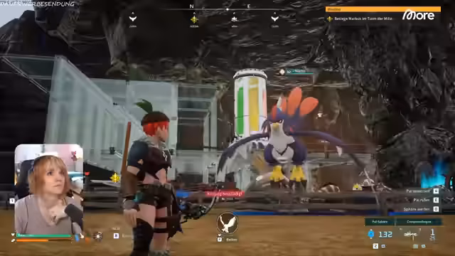 01:39:50Nach einem kurzen Abstecher zu Moon fliegt der Streamer zur Basis von Geraino. Diese Basis wird als sehr schön, ordentlich und mit viel Liebe zum Detail beschrieben. Sie ist in verschiedene Bereiche wie eine Bar, Schlafzimmer, eine große Halle und eine Zuchtfarm unterteilt. Der Streamer lobt die gut durchdachte Integration der Natur in den Bau und den tollen Ausblick. Ein besonderes Highlight ist ein Wellnessbereich mit einem Pollen-Safter.