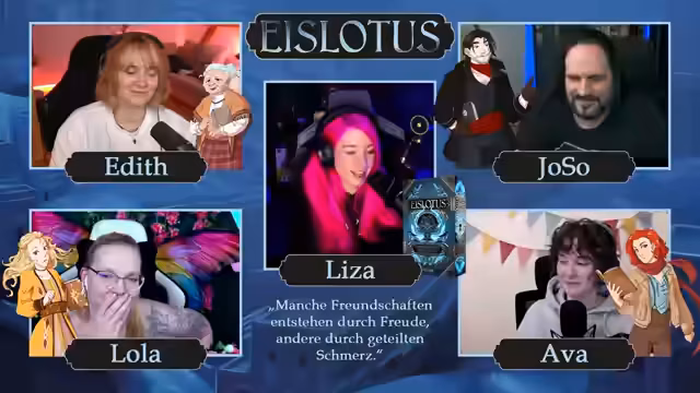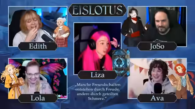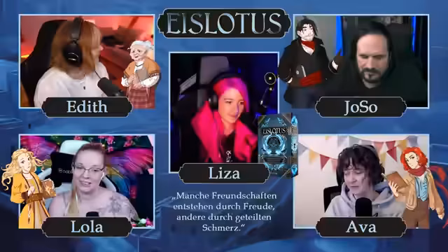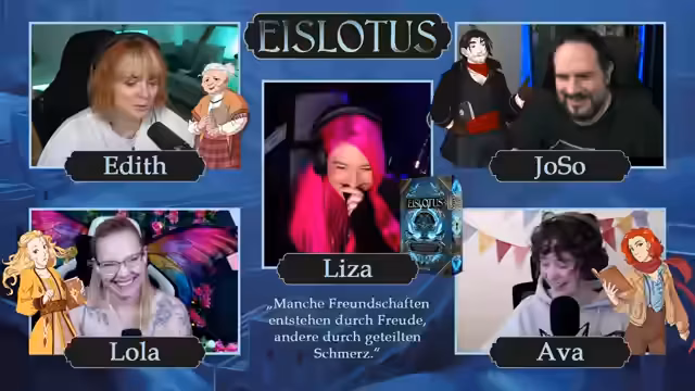 01:53:28Der Stream kündigt einen Wechsel des Formats an. Statt des üblichen Malens startet ein Pen & Paper-Spiel namens 'Talos', das vom Roman 'Eislotus' inspiriert ist. Die Spielleiterin, Leisa Grimm, stellt das Setting und die Regeln vor: Eine Fantasiewelt, in der Menschen durch ihr 'Seelenbuch' Magie eines der Elemente beherrschen. Das Spiel ist ein zweiteiliges Abenteuer, das an diesem Tag beginnt und am nächsten fortgesetzt wird.