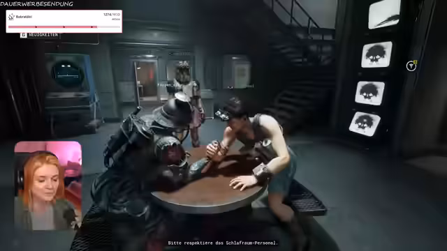 04:28:08Nach dem beinahe scheiternden Versuch, den letzten Boss in 'The Outlast Trials' zu besiegen, gelingt es der Gruppe doch, aus dem Level zu entkommen. Das Spiel endet mit der Bewertung 'B-' für einen Teilnehmer und 'C' für einen anderen. Danach wird das Thema Armwrestling wieder aufgegriffen, als eine neue Herausforderung für den Streamer aus dem Chat vorgeschlagen wird.