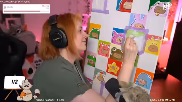 02:28:23Der Streamer arbeitet an einem kreativen Projekt, bei dem er Leinwände mit verschiedenen Farben und Motiven wie Katzen, Füchse und Bienen gestaltet. Er nutzt dabei neonfarbige Tinte für eine bessere Durchleuchtung. Für den Folgetag plant er, Yoshi's Island zu spielen, gefolgt von dem Spiel Are We Yet. Die Chat-Interaktion zeigt, dass das Vorhaben begeistert aufgenommen wird und Zuschauer sich auf den Stream freuen.