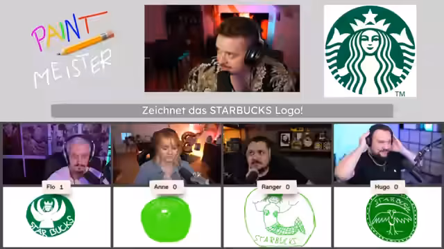 03:45:25Die Teilnehmer wechseln zur nächsten Runde des Paint Meister Quiz, diesmal geht es um Logos. Der Streamer gibt Tipps zur Erkennung wichtiger Merkmale und startet eine neue Aufgabe. Die嘉宾 interagieren humorvoll während des Zeichenprozesses, vergleichen ihre Ansätze und diskutieren über die genaue Darstellung der Logos. Die Zuschauer stimmen über die besten Zeichnungen ab.