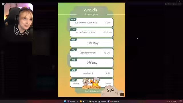 00:19:57Es wurde der detaillierte Streamplan für die Woche vorgestellt. Heute (Montag) sind Art-Session und Team-A-Event geplant. Am Dienstag um 14:30 Uhr startet das 'Anno Curator Wars'-Event mit Teamaufstellung, das voraussichtlich bis 19 Uhr dauern wird. Mittwoch bleibt frei, Donnerstag um 16 Uhr folgt ein großer Spendenstream für den Deutschen Tierschutzbund. Samstag um 9 Uhr steht Witcher 3 mit der Baron-Quest an, Sonntag beginnt mit WoW, bevor gemeinsam mit Belle Plätzchen gebacken wird. Die Woche bietet abwechslungsreiche Inhalte von Gaming über kreative Aktionen bis zur Charity.