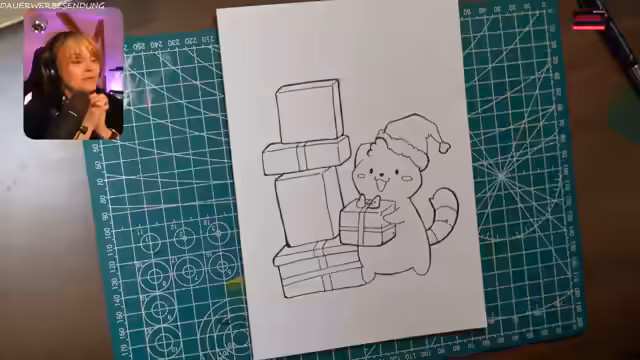 00:42:16Geplant ist das Erstellen handgemachter Weihnachtskarten für die Nichten, in die Konzertkarten integriert werden sollen. Es geht um ein K-Pop-Demon-Hunter-Musical, das bald auf Tournee geht. Die Karten werden mit einem Waschbären-Motiv gestaltet, der ein Geschenk hält, umgeben von Geschenkestapeln und einer Mütze. Die Karten sollen außerdem ein Easter Egg für das Musical enthalten. Für die Gestaltung werden Molotow-Chromstifte verwendet, die eine spiegelnde Oberfläche erzeugen. Die Karten werden nächste Woche fertiggestellt.