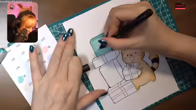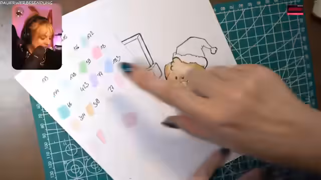 01:22:02Neu angeschaffte Alkoholmarker (66 Stück für 59 Euro) werden live getestet. Es handelt sich um günstige Pastellmarker, die zunächst nach Farbnummern sortiert werden müssen, was sich als chaotisch erweist – das Nummerierungssystem ist unlogisch und die Intensität der Farben variiert stark (einige sind sehr blass, andere wiederum sehr kräftig). Getestet wird, ob die Marker für eine Weihnachtskarte mit Waschbärenmotiv geeignet sind. Problematisch ist das Fehlen einer roten Farbe, weshalb eine rosa Alternative für die Mütze erwogen wird. Bewertet werden das Handgefühl, die Preis-Leistung und die Mischbarkeit. Es stellt sich heraus, dass die Pastellfarben für Hintergründe oder Geschenke geeignet sind, der Waschbär aber zu blass wirken könnte.