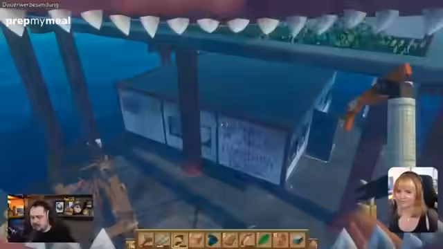 00:42:49Nach einer Reihe von persönlichen Gesprächen und Planungsabsprachen beginnt der Stream spontan mit dem Koop-Spiel Raft. Beide Spieler müssen sich wieder in die Steuerung und das Spielprinzip einfinden. Anfänglich haben sie Schwierigkeiten, das Floß in die richtige Richtung zu steuern, was durch Wind und Strömung erschwert wird. Dies führt zu anfänglicher Frustration und erfordert gemeinsame Anstrengungen, um das Floß zu stabilisieren und dem Ziel näherzukommen.