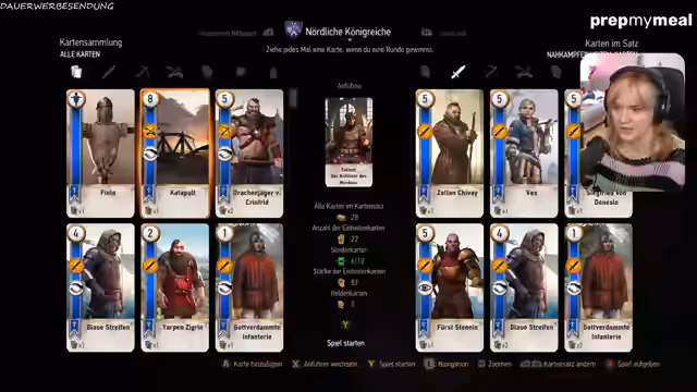 01:19:07Der Stream wechselt zu Witcher 3, beginnend mit der Blut-und-Wein-Erweiterung. Nach einigen Quest-Details zum Baron und gesuchten Personen wird das Gwent-Kartenspiel intensiv gespielt. Es geht um Decks, Strategien und Gewinnchancen. Ein späterer Quest-Start (Stufe 7) wird diskutiert, bevor die Hauptquest 'Die Baron-Quest' mit viel Herumrennen und düsteren Details thematisiert wird. Das Spiel wird als visuell ansprechend, wenn auch alt, beschrieben.