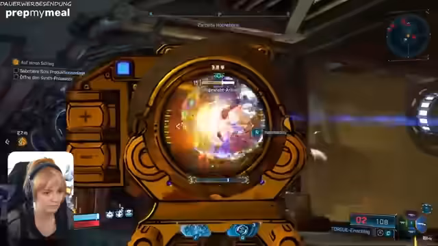 02:41:27Es wird ein gruseliger Charakter im Spiel getroffen. Ein Charakter hat seinen Bolzen verloren und wurde von anderen angegriffen. Die Streamerin findet den Charakter sympathisch. Es wird versucht, einen Außenposten freizuschalten. Es wird überlegt, ob die gewählten Wege richtig sind. Die Streamerin bittet ihren Mitspieler, stehen zu bleiben, damit sie sich im Notfall zurück teleportieren kann. Es wird über Genev Klettrop gesprochen, der einen eigenen Sprachregler hat. Es wird sich darüber lustig gemacht, dass man Claptrap entweder mag oder nicht. Es wird sich auf die Suche nach Iridium oder Odonitprobe gemacht. Ein Überlebenskünstler-Depot mit viel Loot wird gefunden. Die Streamerin vergleicht sich mit Claptrap und betont, dass sie einfach da ist.