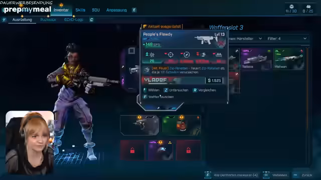 02:17:27Die Streamerin erzählt von einer Nachricht ihrer Moderatorin Krishi, die besorgt über den Zustand des Kanals ist und sogar vorschlägt, das Streamen aufzugeben. Es wird über den Humor der Moderatorin gescherzt und eine frühere Kündigung angedeutet. Ein Vorratsdepot des Crimson-Widerstands wird gefunden, ist aber verschlossen. Es ist Mittagszeit, und die Streamerin hat Hunger. Die PrepMyMeal-Partnerschaft wird vorgestellt, und die Zuschauer werden aufgerufen, mit den Codes 'Ivaraldis' oder 'Ranger' 5% Rabatt auf ihre Bestellung zu bekommen. Es werden verschiedene Gerichte und Ernährungsweisen (vegan, vegetarisch, ketogen, anti-entzündlich) hervorgehoben. Die Streamerin betont, dass es eine große Auswahl gibt und es günstiger ist, als eine Pizza zu bestellen. Es wird über die Größe der Meal-Boxen gesprochen und wie oft die Streamerin bestellt. Ein Care-Paket wird gefunden, aber die Streamerin weiß nicht, was sie damit tun soll. Der Chat gibt Hinweise, dass es zum nächsten Hideout gebracht werden muss.