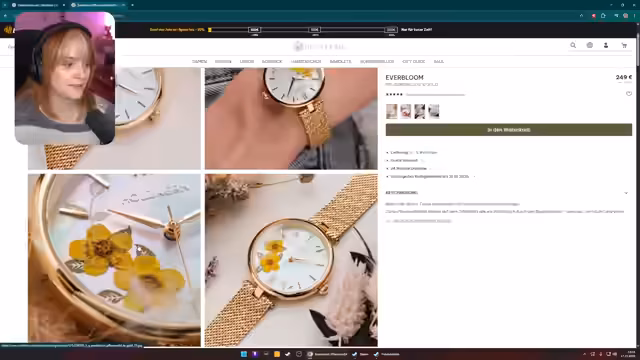 00:17:29Die Streamerin setzt die Präsentation der Holzkern-Produkte fort und zeigt ein Set bestehend aus einer Kette und einem passenden Armreif in Silber, um ein harmonisches Gesamtbild zu schaffen. Besonders begeistert ist sie von den passenden Ohrringen mit Blumenmotiv, die sie gerne auf Messen trägt, wenn sie keine Kopfhörer aufhat. Als weiteres Highlight präsentiert sie eine Armbanduhr mit floralen Elementen und einem 'Artie-Style', in die sie sich sofort verliebt hat. Sie betont, dass diese Uhr für sie unabhängig von der Jahreszeit ist und perfekt zu ihrem Stil passt. Die Streamerin erklärt, dass sie sich ohne Ketten 'nackig' fühlt und Schmuck für sie ein wichtiger Bestandteil ihres Outfits ist. Sie ermutigt die Zuschauer, den Link im Chat zu nutzen, um die Angebote zu entdecken und sie gleichzeitig zu unterstützen. Sie weist darauf hin, dass Holzkern viele neue und hochwertige Produkte anbietet, die sich auch als Weihnachtsgeschenke eignen.