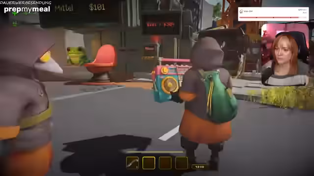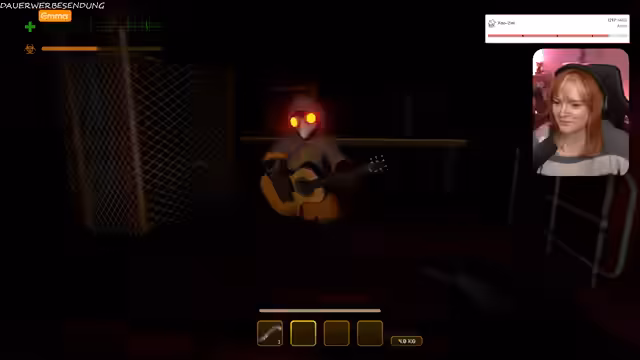 01:04:02Das Team erkundet die Fabrik und muss sich mit verschiedenen Gefahren auseinandersetzen, darunter Toxizität, die durch herumliegenden Müll und Gifte entsteht. Die Streamerin erklärt, dass das Toxizitätslevel durch spezielle Getränke gesenkt werden kann, die man im Austausch gegen gefundene Gegenstände erhält. Sie sammeln weiterhin Gegenstände wie Schuhe und Regenschirme, um das Reparaturziel von 190 Dollar zu erreichen. Während der Erkundung fällt der Strom aus, was die Situation noch unheimlicher macht. Die Streamerin und Doni versuchen, Schwabbel zu finden, der sich verirrt zu haben scheint, und rufen ihn über eine Gegensprechanlage aus. Es wird ein Codewort, „Scheidenpilz“, eingeführt, um Mimics zu identifizieren. Die Streamerin begegnet einem Mimic, der Schwabbels Aussehen annimmt, und es kommt zu einer Verwechslung, bei der sie versehentlich jemanden tötet. Trotz der Verwirrung sammeln sie genug Geld, um die Tram zu reparieren, und beschließen, die Runde zu beenden, um nicht alles zu verlieren.