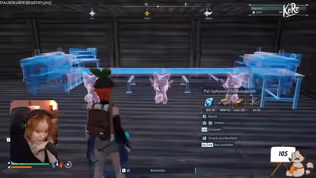 01:42:01Das Hauptaugenmerk lag auf der Verwaltung der im Spiel gehaltenen Haustiere. Die Streamer zeigte ihren Chat ihre Tiere, darunter Kyro, Farbenzirkel, Froschmädchen, Ranger, Retro und Stern. Dabei bemerkte sie, dass der Name 'Cutter' fehlte, was sie leicht enttäuschte. Nach dem Sortieren ihrer Kisten erinnerte sie sich, dass sie ihre Sphären und Elektrodrüsen verloren hatte, was sie dazu veranlasste, die Rohstoffe für diese Gegenstände erneut zu beschaffen. Der Aufbau der Basis schritt mit dem Entfernen des alten Gebäudes voran.