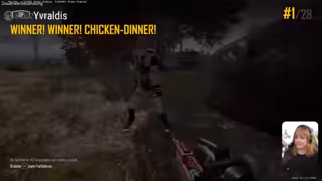 Es wurde in einer postapokalyptischen Welt um das Über gekämpft. Nach dem Bau einer Verteidigungsanlage wurde die Basis gegen einen Zombie-Ansturm gehalten. Anschließend wurde die Teilnahme an einem PUBG-Turnier absolviert. Es konnte ein Sieg im Match errungen werden.